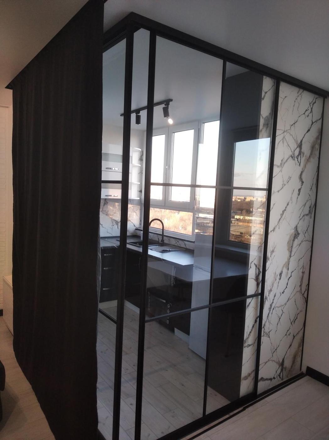 Situated in Kyiv, 5.3 km from Expocentre of Ukraine and 10 km from State Aviation Museum, Стильна квартира з домашнім кінотеатром та кухнею з панорамним видом, ліфт та вода безперебійно features air-conditioned accommodation with a balcony and free WiFi. The property has city views and is 14 km from Shevchenko Park and 14 km from Khreshchatyk Metro Station. The property is non-smoking and is located 13 km from Olympic Stadium.