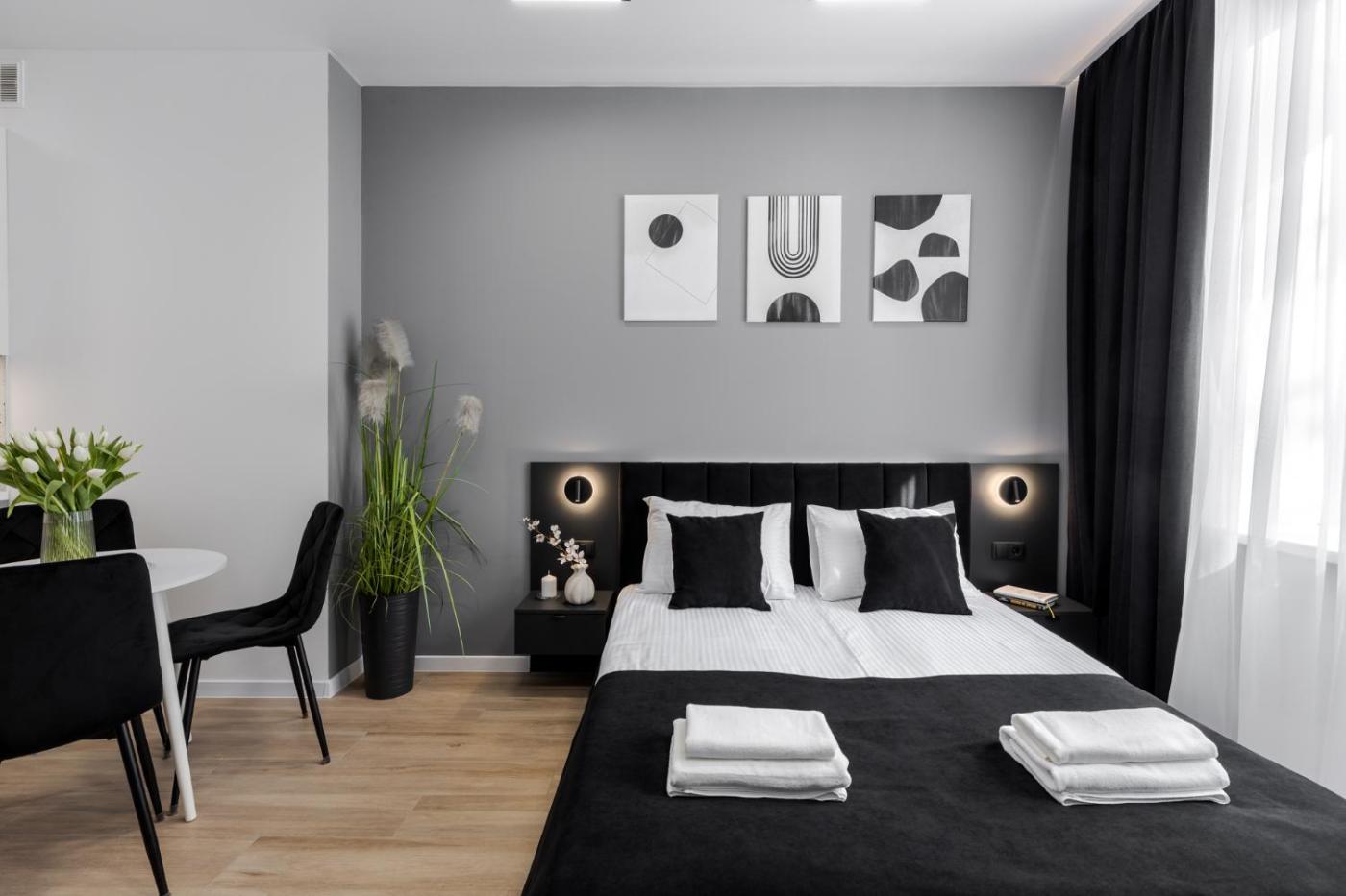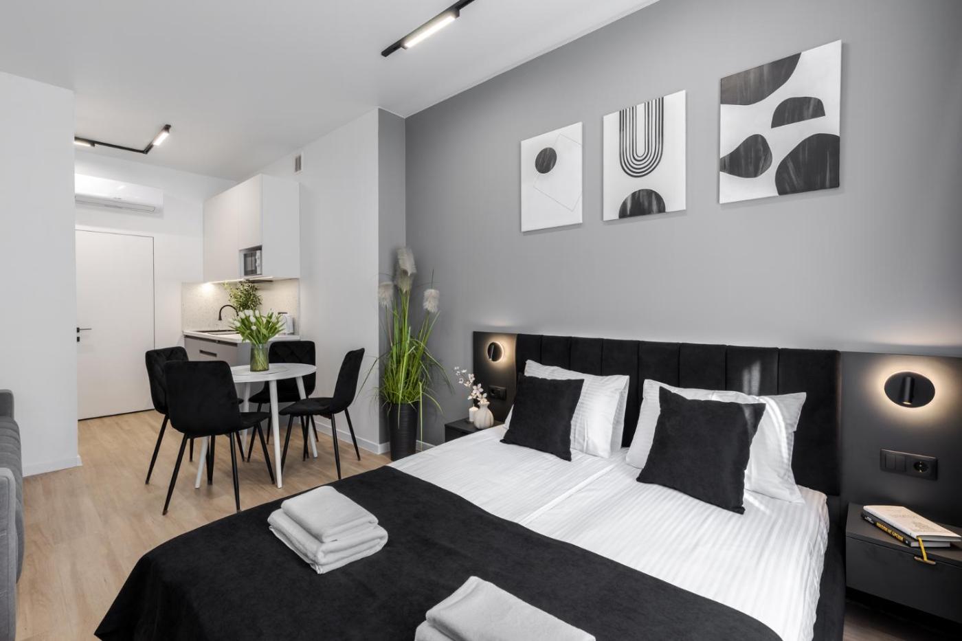 Studio Apartment with One Double Bed. The air-conditioned apartment has 1 bedroom, 1 bathroom and a kitchen. The apartments kitchen is available for cooking and storing food. This apartment features a washing machine and a flat-screen TV. The unit has 1 bed.