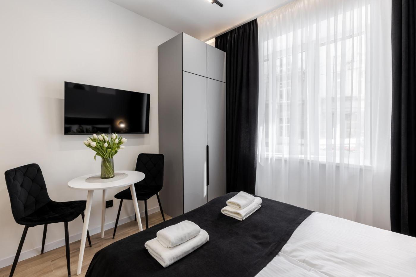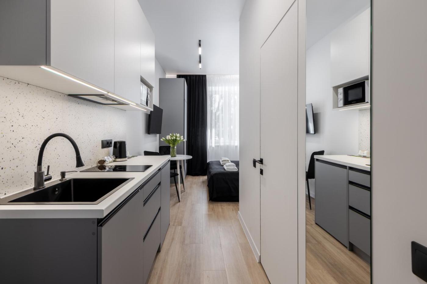 Studio Apartment. The air-conditioned apartment has 1 bedroom, 1 bathroom and a kitchen. The apartments kitchen is available for cooking and storing food. This apartment offers a washing machine and a flat-screen TV. The unit has 2 beds. ;